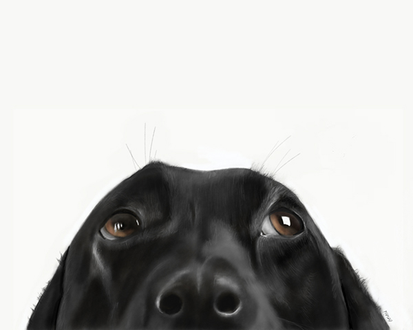 Digital Painting captures the innocent expression of this black dog, head tilted upwards, gazing with expectation.